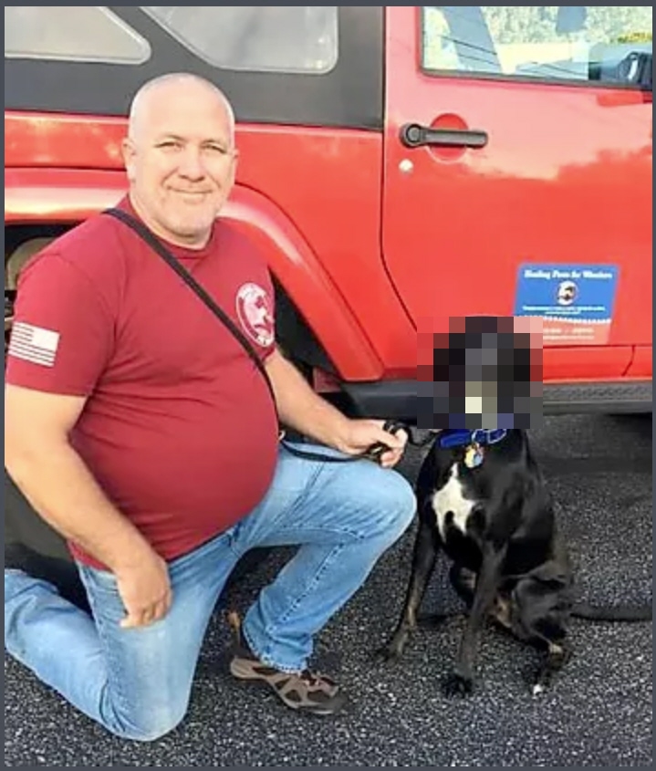 Blurring dog’s faces is a Military Phony in-joke. Not the poor dog’s fault he’s stuck with a valor thief, so why shame him as well? Wouldn’t be fair…