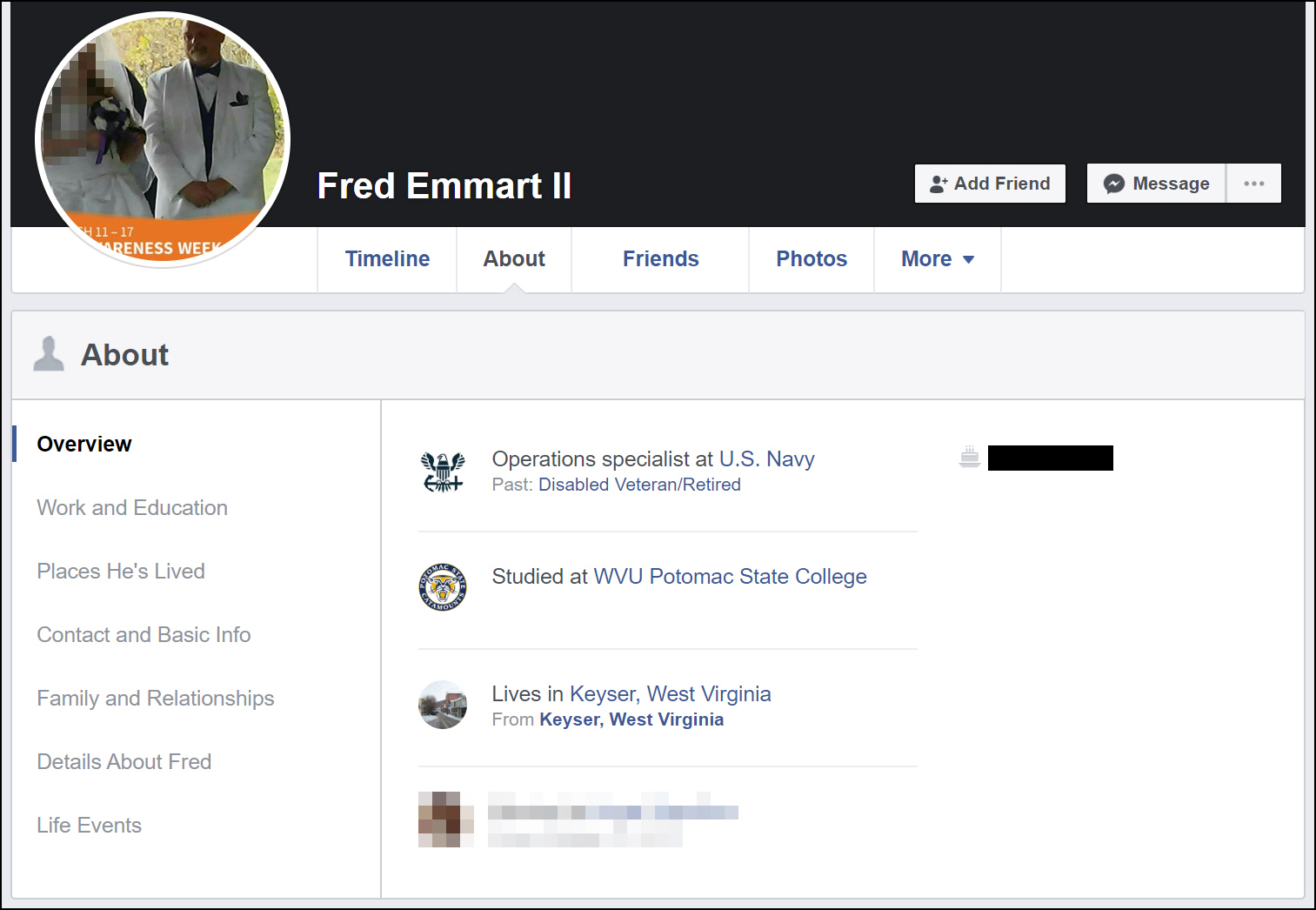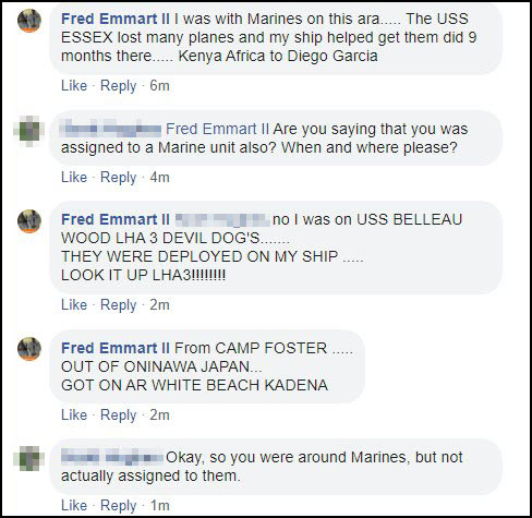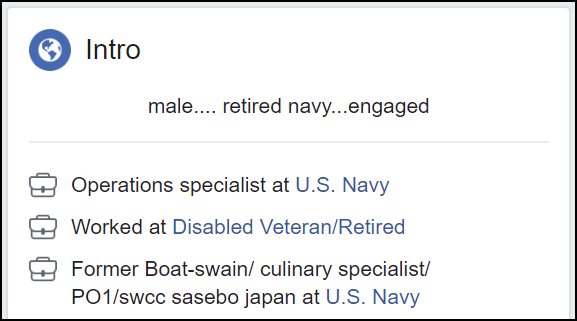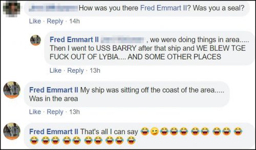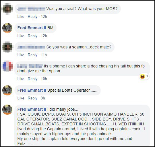 On Emmart’s Facebook profile, it says he was an Operations Specialist (OS) and retired from the Navy. It also says he is a Disabled Veteran, former Boat-swain [sic], Culinary Specialist and Petty Officer First Class (E-6).