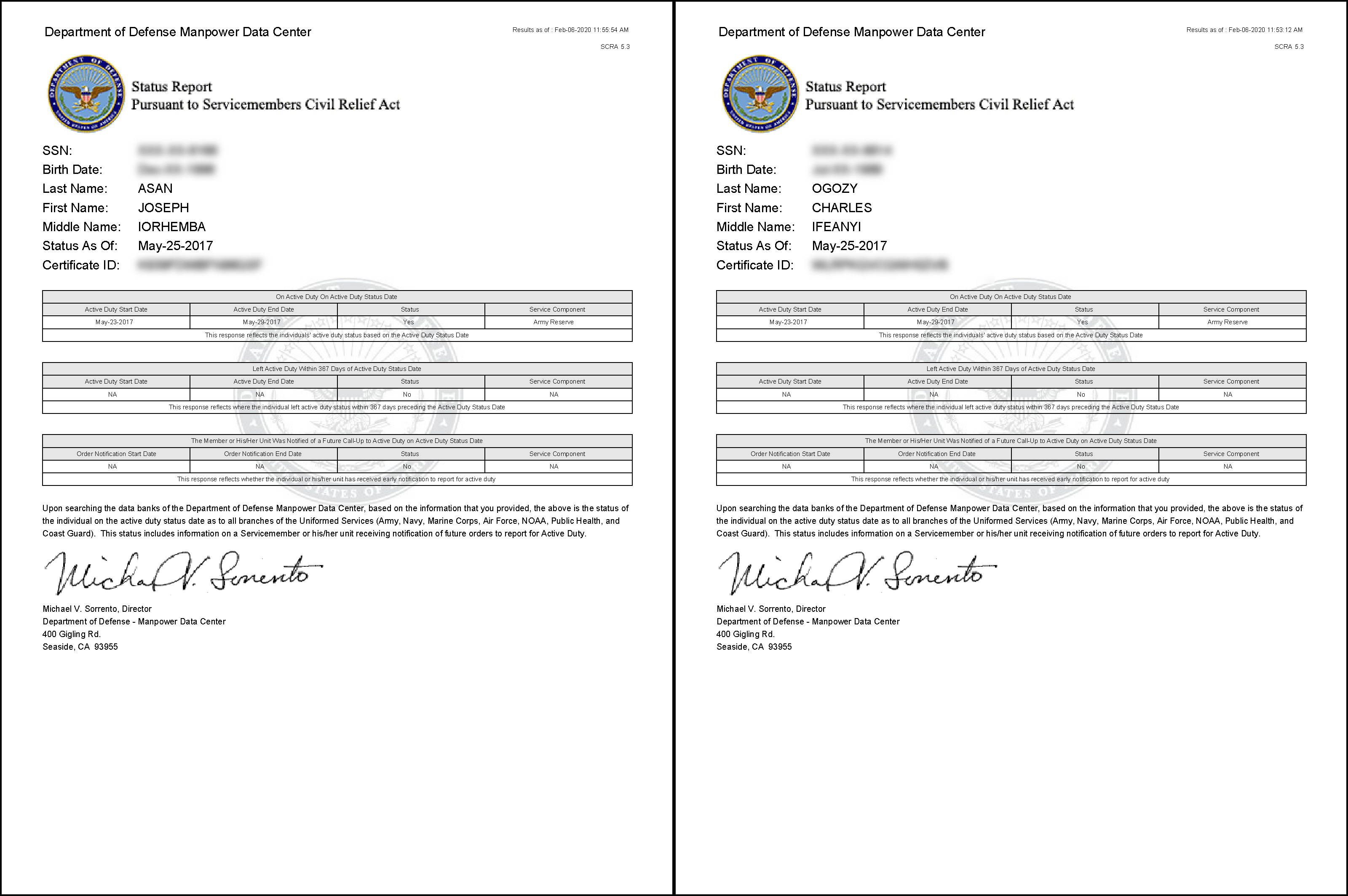 Joseph Iorhemba Asan Jr. and Charles Ifeanyi Ogozy joined the Army Reserve in February 2018, and that same month embarked on a “scheme to commit fraud against victims across the United States,” according to the complaint. Prosecutors say the duo amassed up to $3 million.