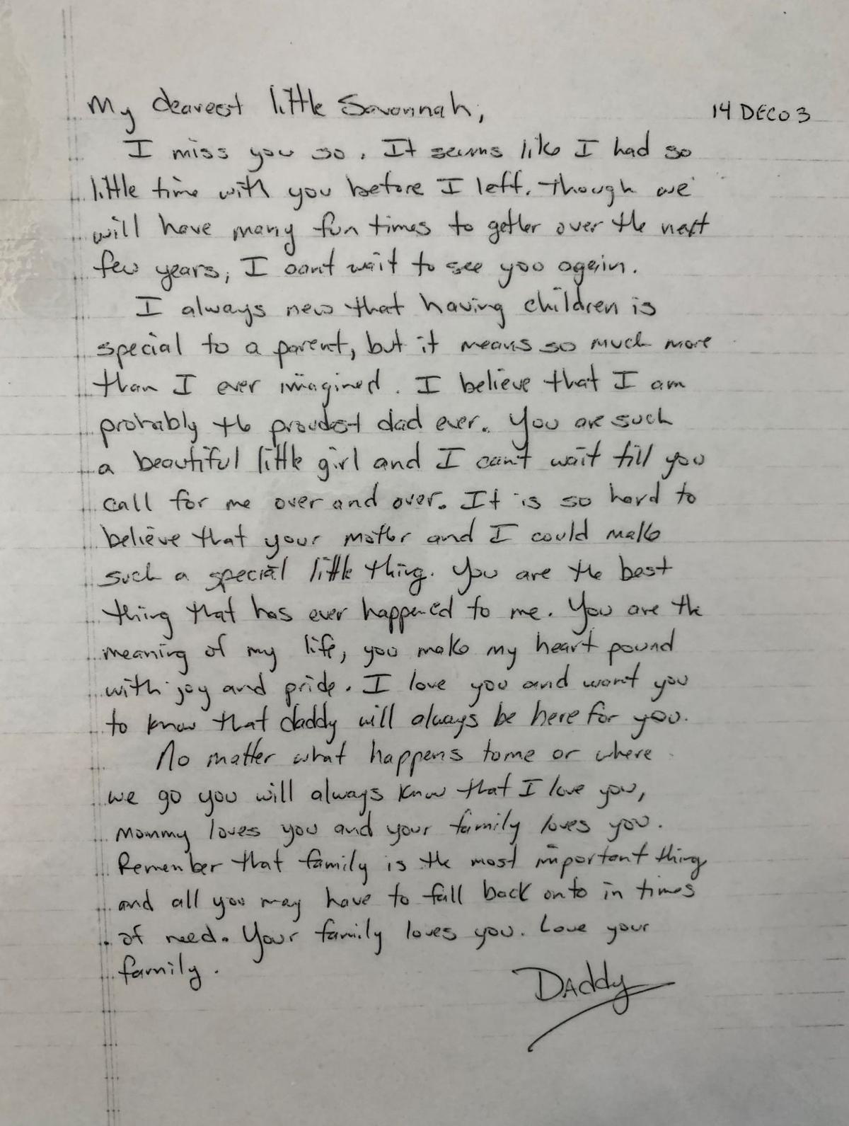 That of his daughter, Savannah, who was 18 months when Weaver was killed while on a Black Hawk helicopter en route to Baghdad for a checkup when the craft was shot down south of Fallujah, Iraq. The Jan. 8 crash killed eight other soldiers. As an Army Ranger, Weaver survived the October 1993 battle of Mogadishu in Somalia that was recounted in the book and film, “Black Hawk Down.” He helped save a buddy’s life and is featured in a documentary on the battle.