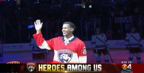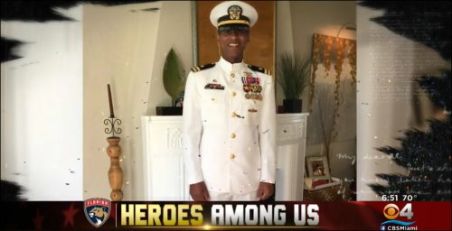 The local CBS affiliate, CBS4, works with the Florida Panthers on a “Heroes Among Us” program that honors veterans. The story and video are here.