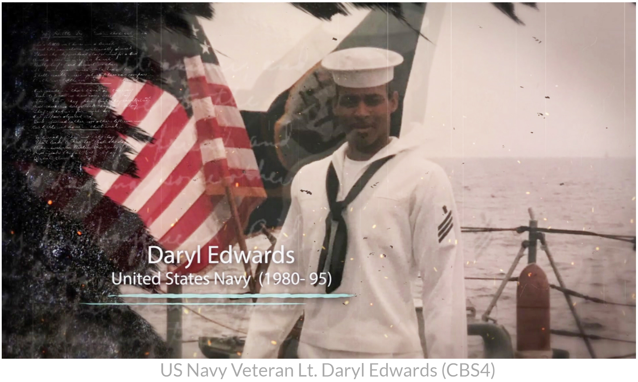 Additionally, the video shows a photo of Edwards as a Navy Lieutenant (O-3) wearing a U.S. Navy SEAL Trident, a Silver Star medal and a Purple Heart.