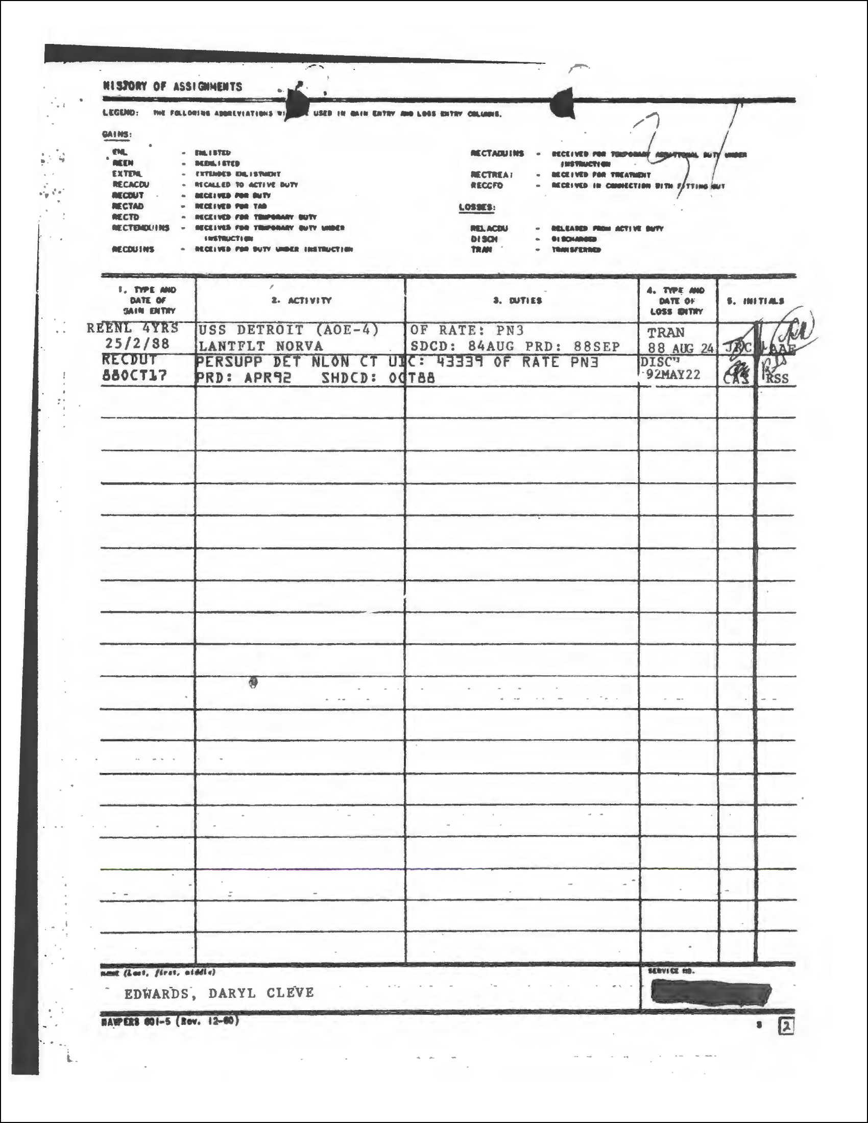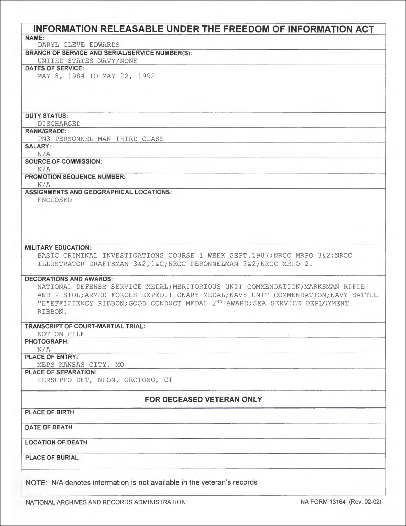 The UDT/SEAL database was checked and it was determined that there is NO record of “Daryl Cleve Edwards” or any other variation of his name ever completing BUD/S Training or assigned to any SEAL teams.