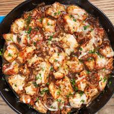 3. Add beef broth and return caramelized onions to skillet. Bring mixture to a boil, then reduce heat and simmer until chicken is cooked through and beef broth reduces slightly, about 10 more minutes.