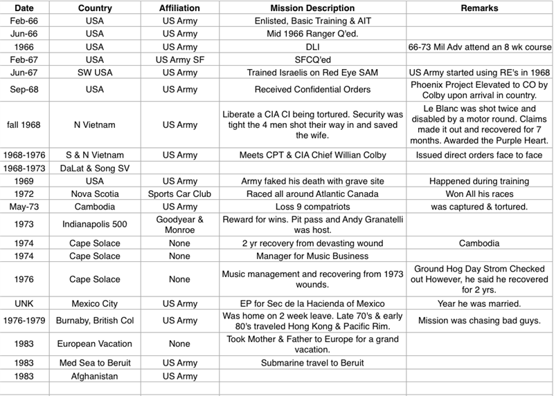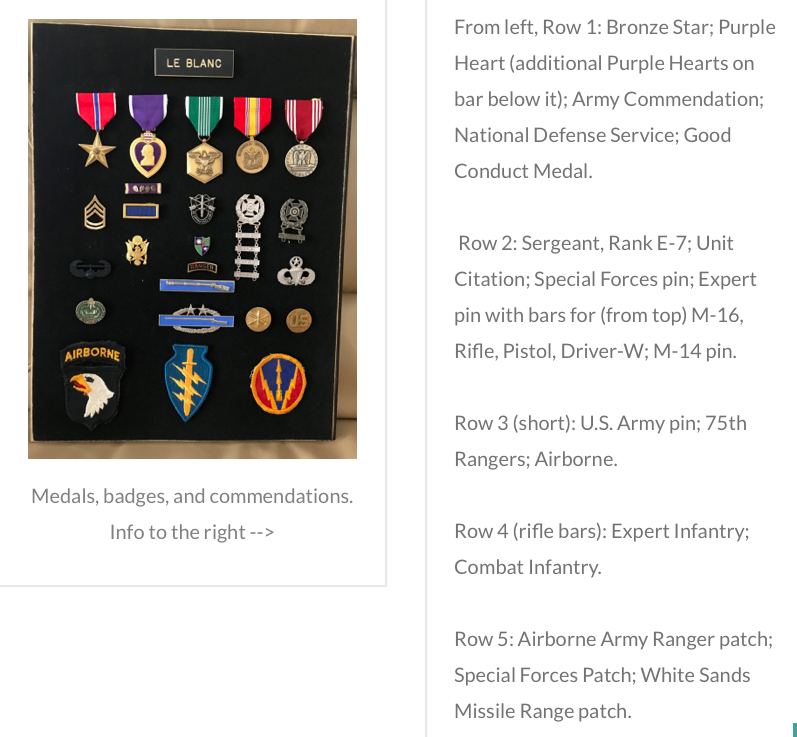 Posering douchebag Martin Leblanc here had too many tequila shots in Ciudad Juarez while at Bliss and probably dreamed up this whole 40 year Walter Mitty career in Army SF. You can daydream and fantasize a lot when stationed at Bliss; not much to do while stuck out at McGregor Range…