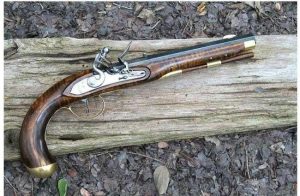 The pictured gun pr0n shows that even before the works of the Saintly John Moses (Howitzer be his name) the caliber of choice for home defence, ship boarders, horsemen, and duelists was the vaunted .45. Where’s the matching cutlass?