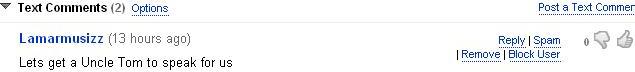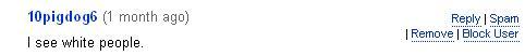 So yesterday, I found a black man (certainly not the only one there, but the only one with a megaphone) and put that video on YouTube. One of the two comments;