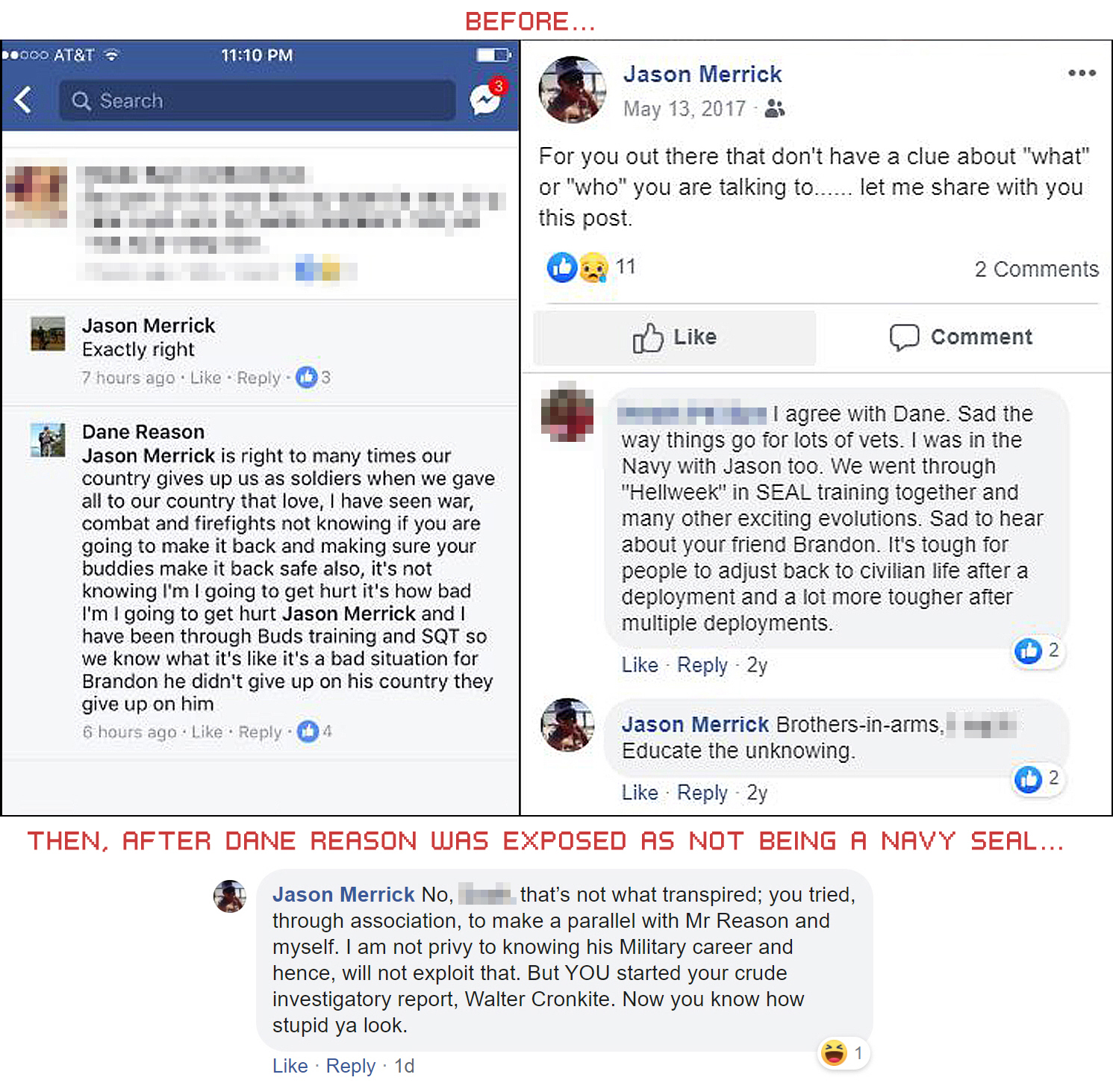 Let me be the FIRST, Jason Lee Merrick, to welcome you to your new found Google Fame as an embellishing POS that couldn’t be happy and proud of your record. You can be proud of adding to the long list of fake Navy seals (sic) that have come to grace the pages of infamy. Embrace the suck…Bitch! Yesterday WAS the last easy day.