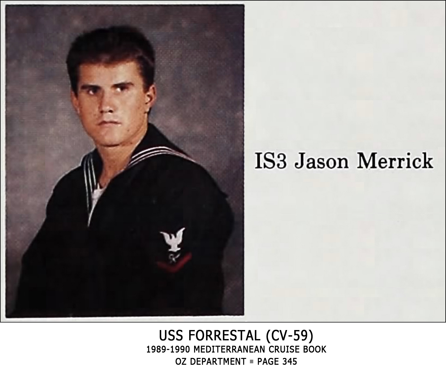 Merrick’s records show no training as a Navy SEAL nor any duty assignments as a Navy SEAL. A good deal of Merrick’s time was spent aboard the USS Forrestal (CV-59).