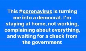 Quit touching your face, you don’t want the chicom 19 to catch you, well do you? 🙂