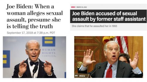 Fast-forward to the 2020 Democratic presidential nomination process. This time, Joe Biden faces sexual assault allegations. Where is Alyssa Milano and her argument that women should be generally believed even if men are given their due process?