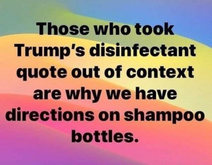 An Arizona couple ingested materials used to clean fish tanks. The argument that the spouse advanced was that she heard President Trump and his chloroquine statements. Both her husband and she took a cocktail of ingredients that included a substance used to clean aquariums. The husband later died.