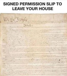 I was asked by a “Karen” what I was doing out of my house about a month ago when the shelter in place order was first placed in effect. I told her “It’s OK, I have a permission slip signed by James Madison”.