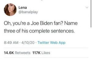 “Oh, you’re a Joe Biden fan? Name three of his complete sentences.”