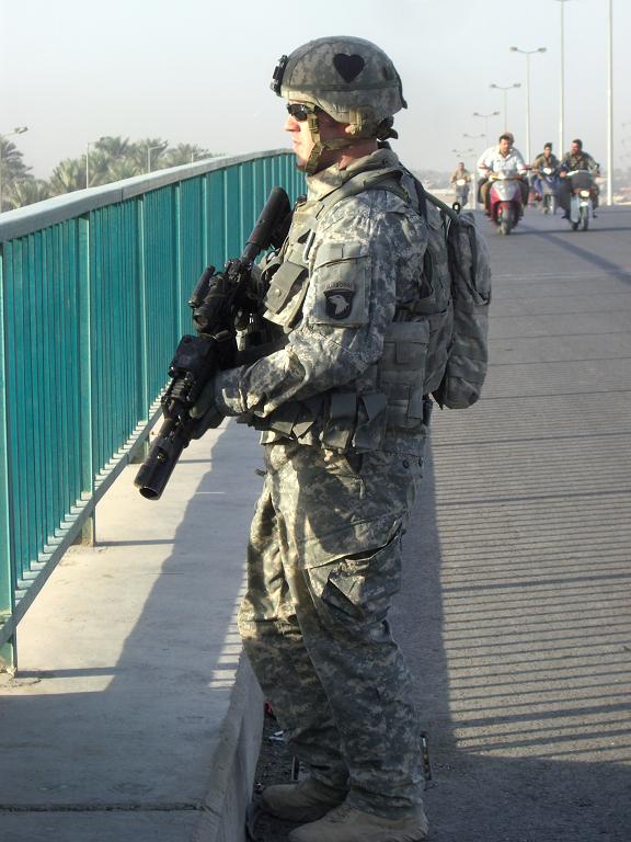NoSlackDelta – “.50 cal gunner in D. Co, 2/327 INF, 101st Airborne. 2003-2007. Tour in northern Iraq (Kirkuk and the immediate area north of the city) sept 05 – sept 06. I’m on the right, this was take right before our platoons first mission/patrol in Kirkuk – Sept 05. Had just arrived in country so no combat patch there.”