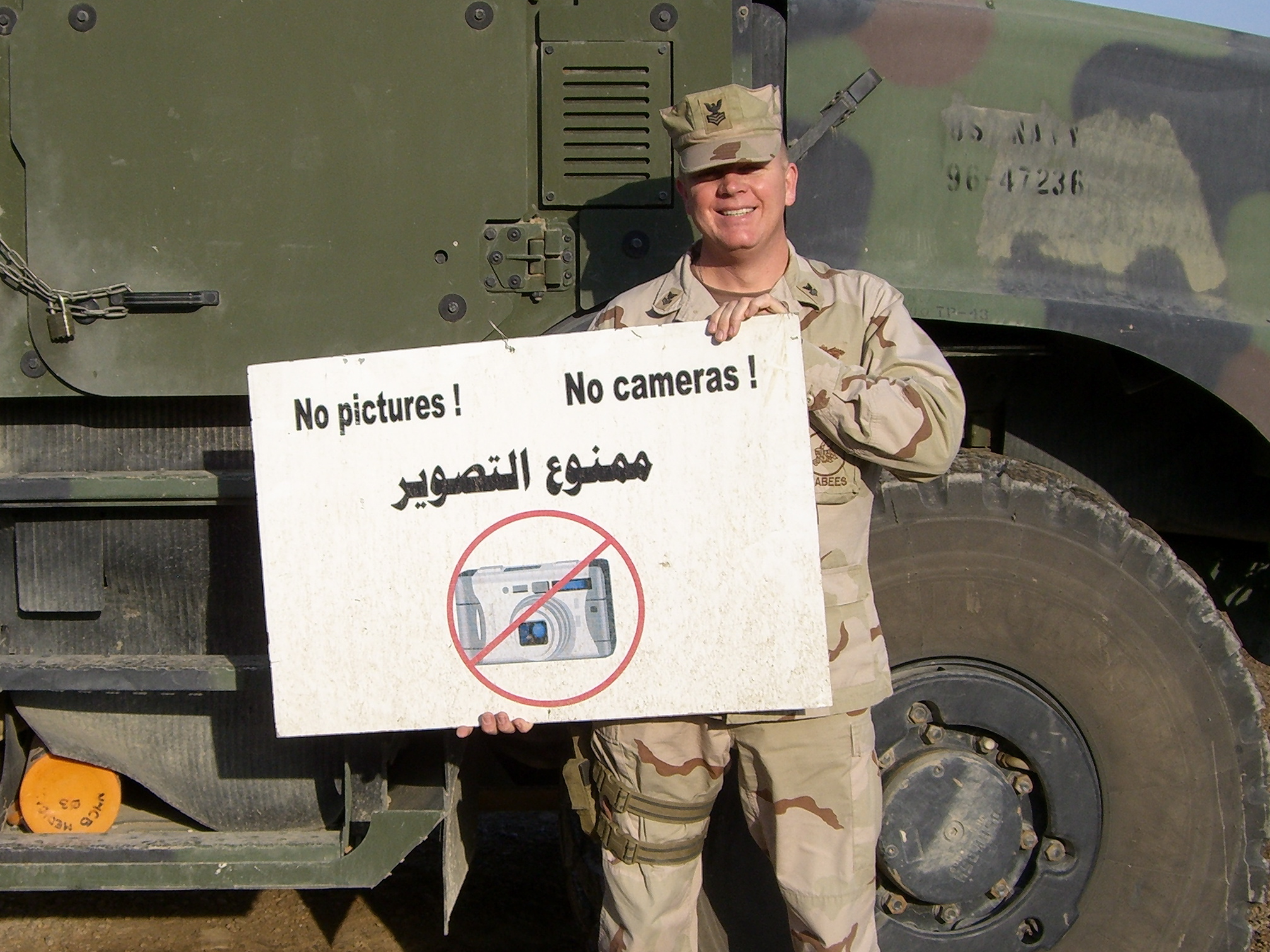 Jacobite sends; “I’m on guard duty outside the main gate to Tallil Airbase, Iraq in late 2003”