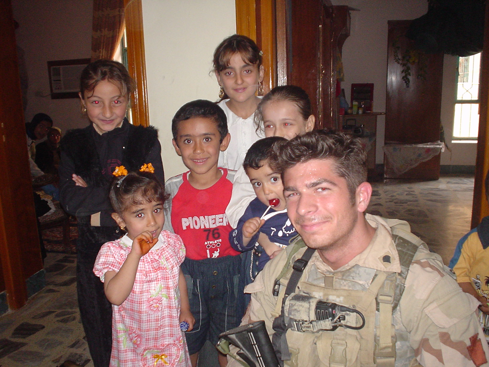 Elric sends “Taken in Rawah, IZ in Aug 2005. One of my better memories of that tour. I used to carry the beanies on my Stryker to give to kids on cordon and searches while we did tactical questioning on the males. That and Jolly Ranchers (which probably is a war crime).”