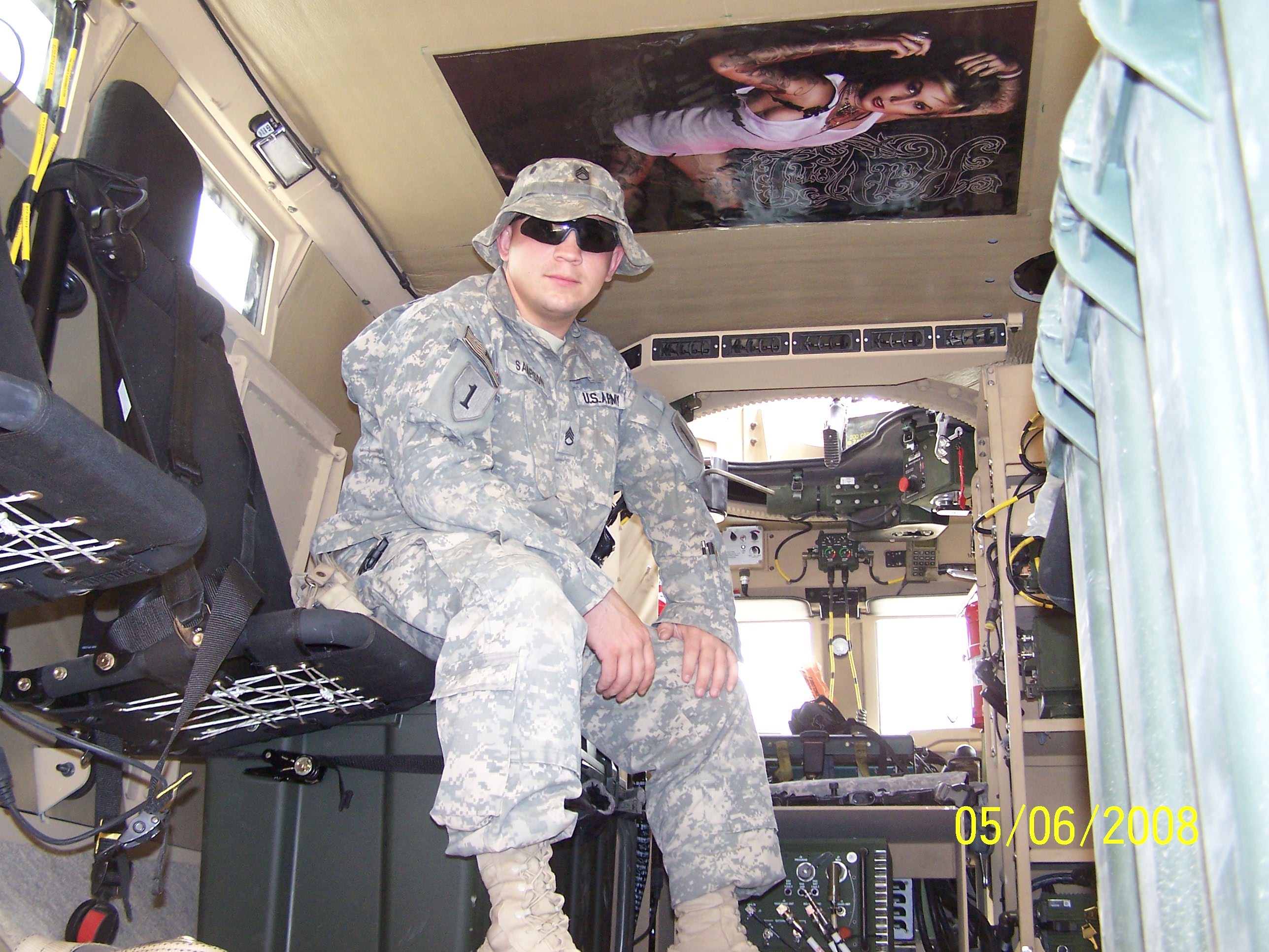 Twist sends; “This is a picture of me out the “Airguard” hatch of my Stryker during Operation Together Forward in Baghdad in 2006. During the operation my BDE cleared all of Baghdad. If it had 4 walls and a door, we cleared it.”