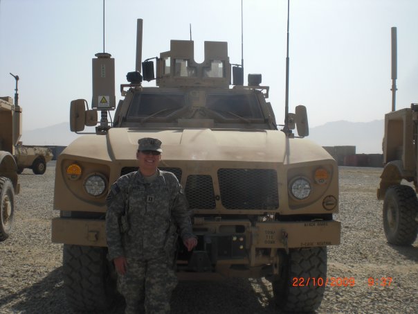 Kateser: Picture is from OEF 2009-2010, taken on BAF with one of the first MATVs to hit theater (snuck into the AfSB yard for a look before being able to draw some of our own). Currently back in AFG on KAF, but that picture would be of me in front of my computer with a headset on listening in on some meeting or in front of the poo pond…Not nearly as hooah.