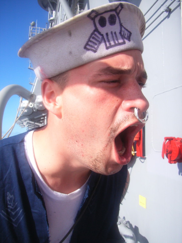 Mudwhistle says; “I don’t post much, just lurk quite a bit but I figured what the hell, here’s me screaming at Wogs during a line crossing onboard USS Shiloh around 2006-2007. Not the most recent but one of my favorites.”