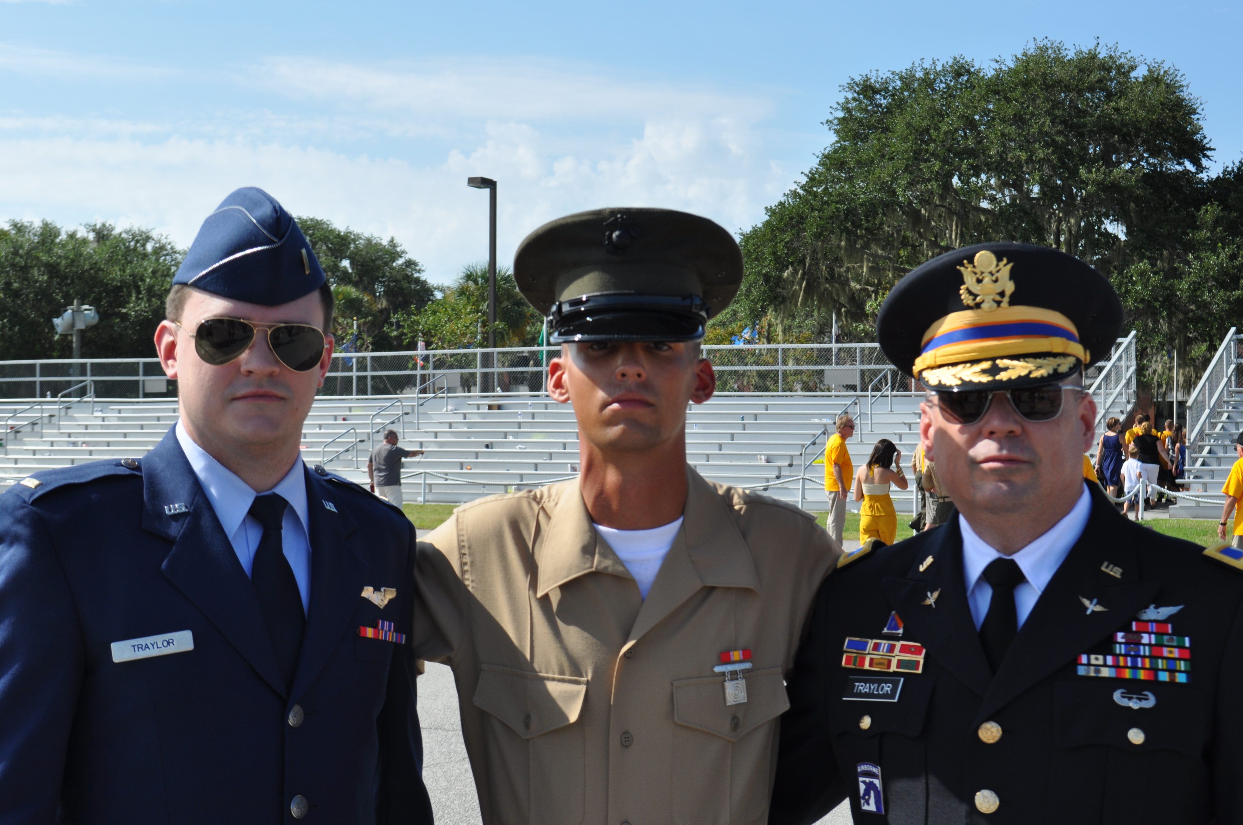 From Mark; Here’s a pic of me just prior to my retirement at my second son’s graduation from Marine Corps Recruit training at Parris Island, SC 2011, along with my oldest son who is a 1LT with the Air Force as an AWACS combat controller and currently deployed to the Southwest Asia theater.