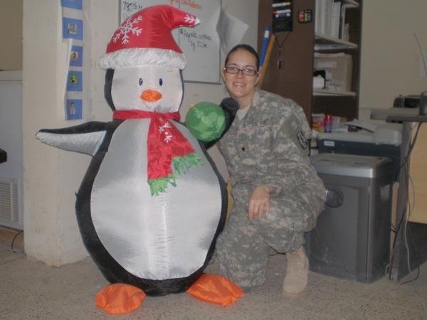 Anonymous in JAX sends this picture of her and a local insurgent penguin in Iraq;